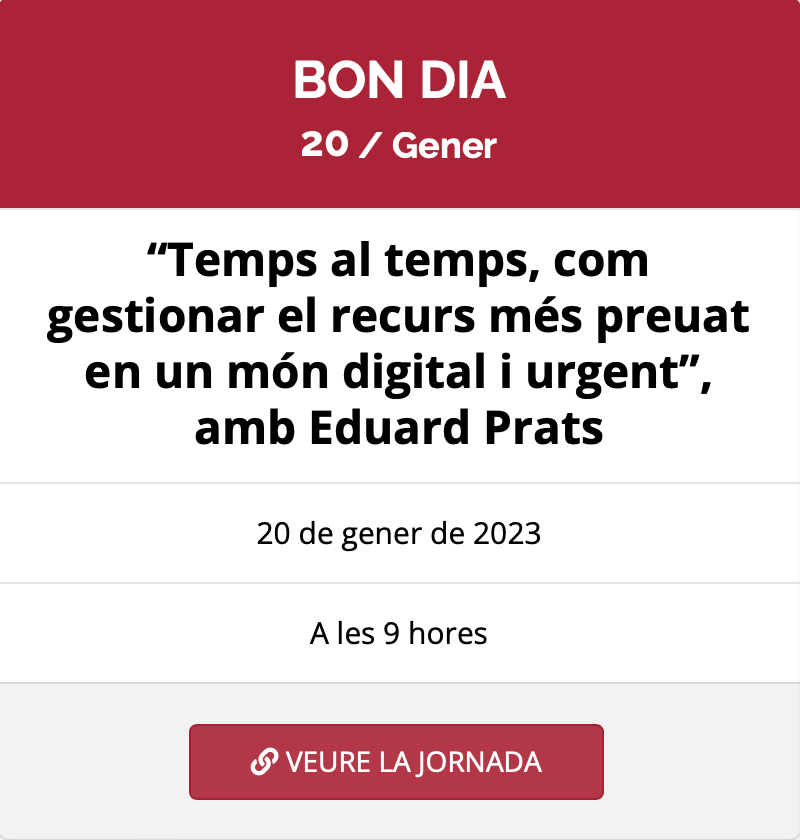 “Temps al temps, com gestionar el recurs més preuat en un món digital i urgent”, amb Eduard Prats